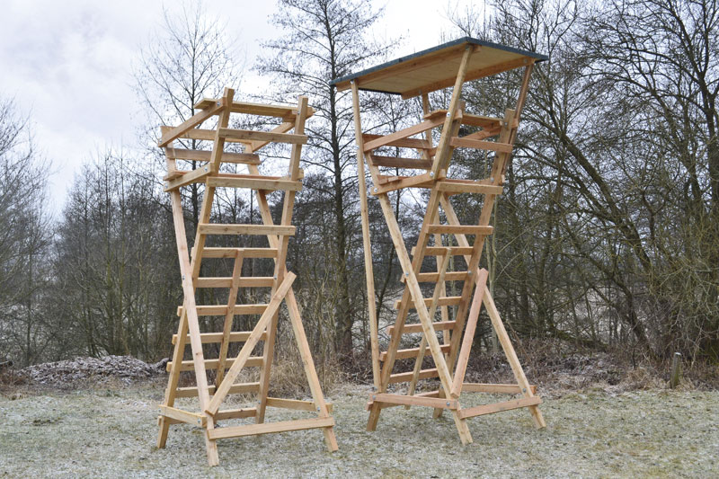 Die Ansitzleiter „Horrido“ ist eine Scherenleiter. Sie hat eine Sitzbreite von 90 cm, ist in drei verschiedenen Höhen und mit oder ohne Dach erhältlich.