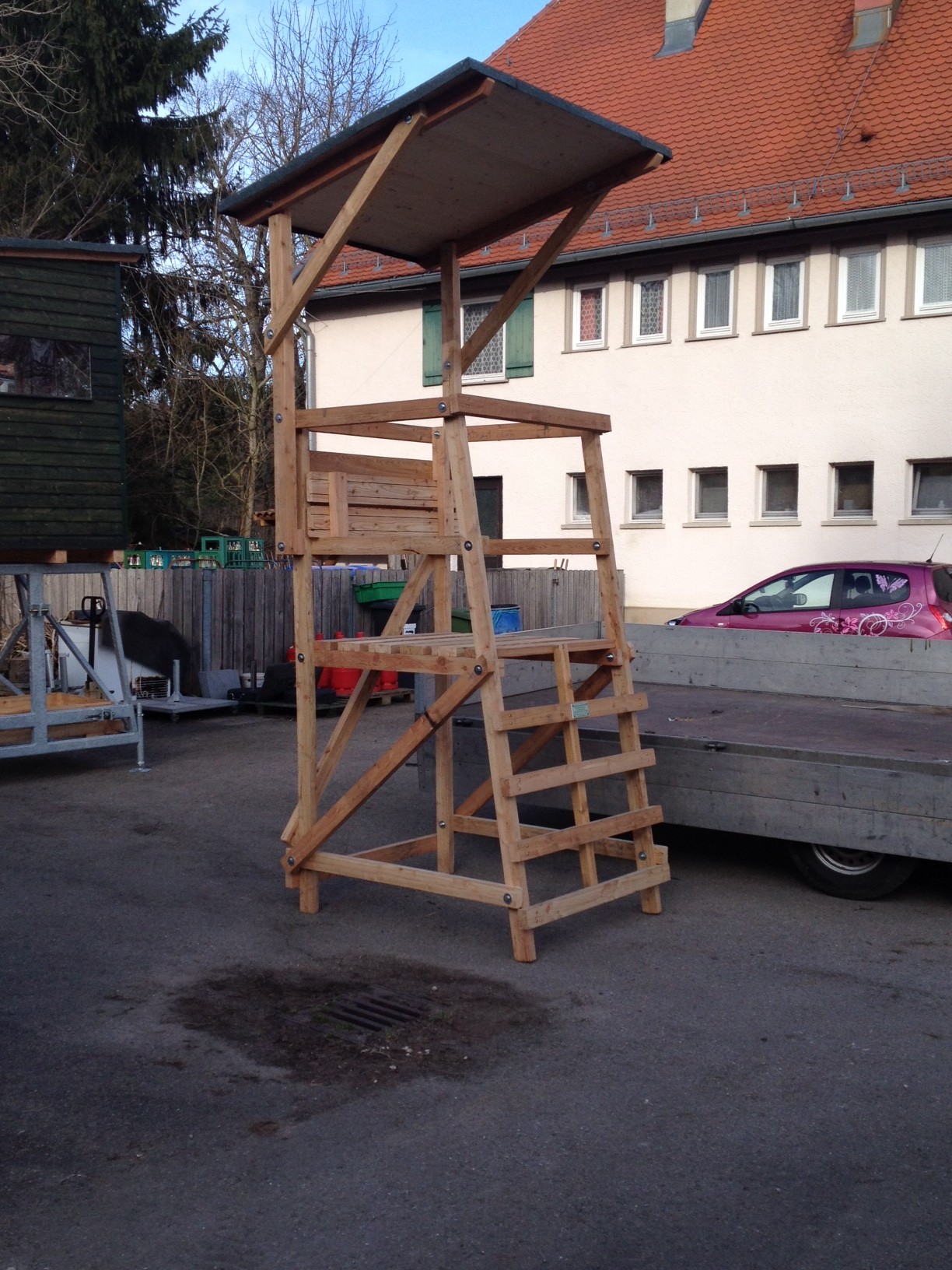 II Drückjagdbock „Knoten“Unser Drückjagdbock „Knoten“ hat eine Standfläche von 1,25 x 1,14 m, eine Sitzbank mit einer Rückenlehne und ist in drei verschiedenen Höhen und mit oder ohne Dach erhältlich. |