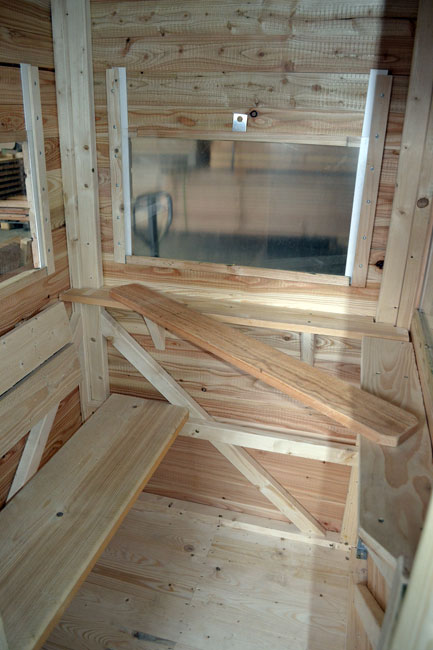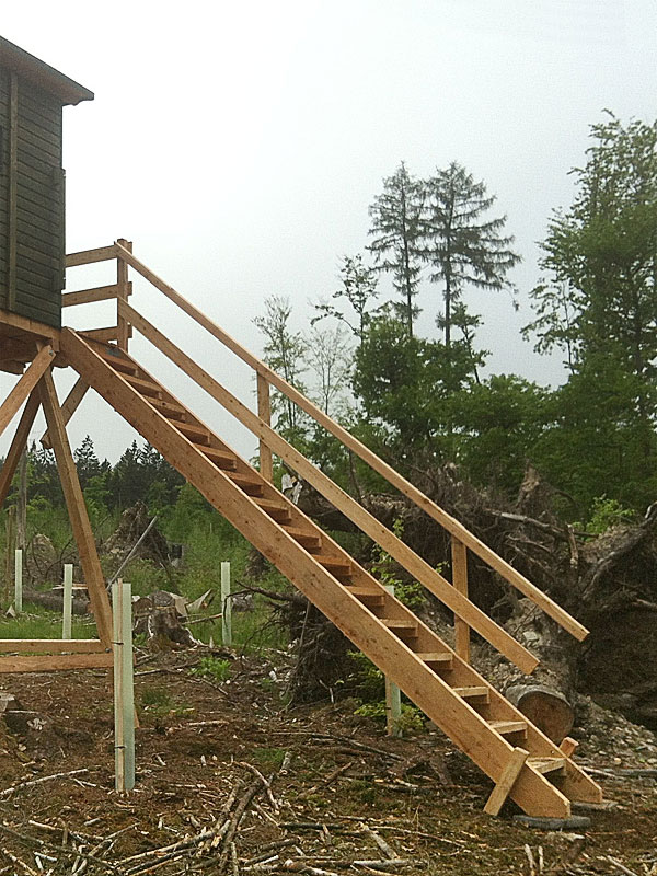 Das Lärchenholz muss nicht weiter behandelt werden. Durch den hohen Harz- und Ölanteil hält es sehr lange der Witterung stand. Bei den Kanzeln „natur“ verzichten wir auf den Anstrich.