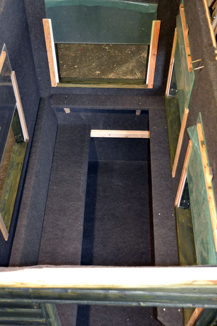 Standard Sitzbank und Rückenlehne sowie Ablagen sind gepolstert und mit Teppich bezogen, auf dem Fußboden ist Teppich verlegt (nur bei geschlossenen Kanzeln möglich)